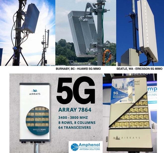 It is important to note these MIMO and Massive MIMO arrays are extremely expensive and only deployed in major metropolitan cities around the world.  It simply does not make economic sense for them to be deployed in rural or low density cities at this time.  This is also one of the few technologies that telecommunication companies are calling “5G” and very dangerous in relation to the radiation output produced.