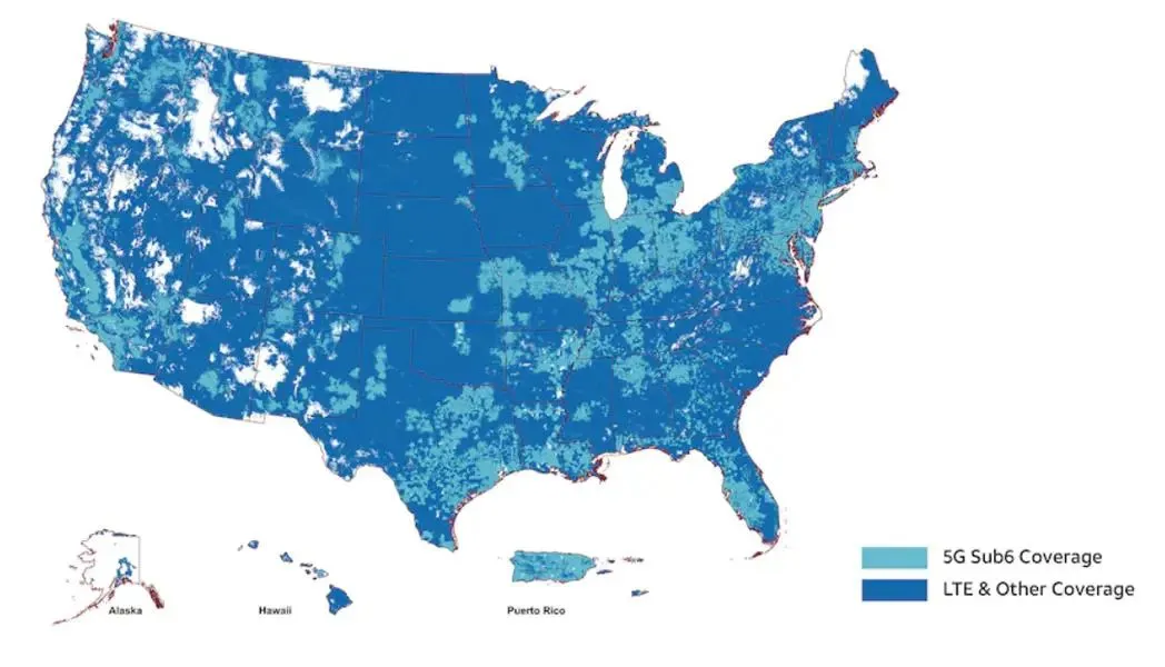The other technology that the industry labels as “5G” but is in fact NOT the MIMO or Massive MIMO tech above, is a multi-point 4G LTE service that in essence will, as the name implies, send/receive data from multiple towers down to your device.  It is THIS technology that allows Verizon, AT&T and T-Mobile to claim they have “nationwide 5G coverage” and may help you translate the maps they show below: